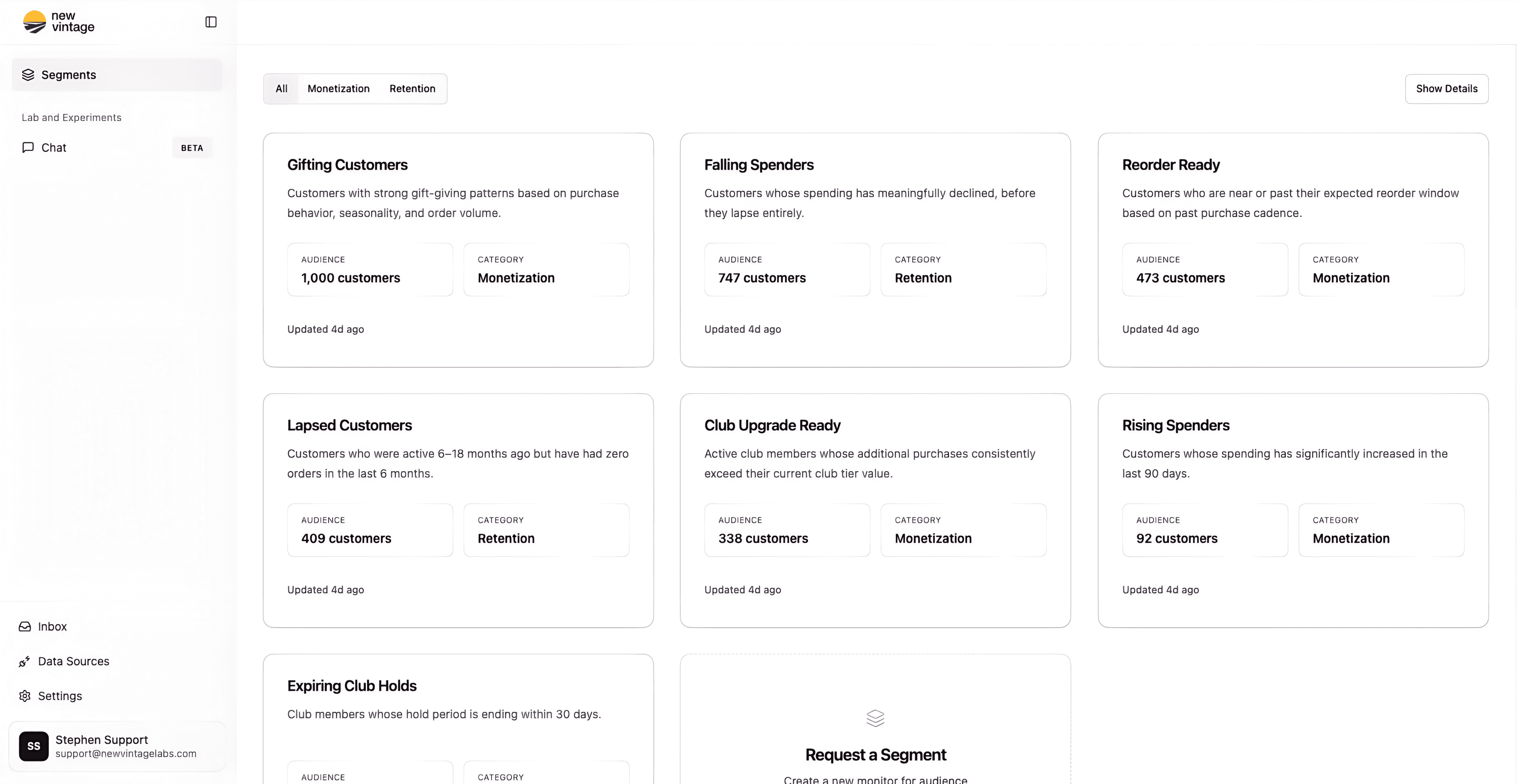 New Vintage is your DTC analyst that shows you which customers need attention, why, and what to do about it